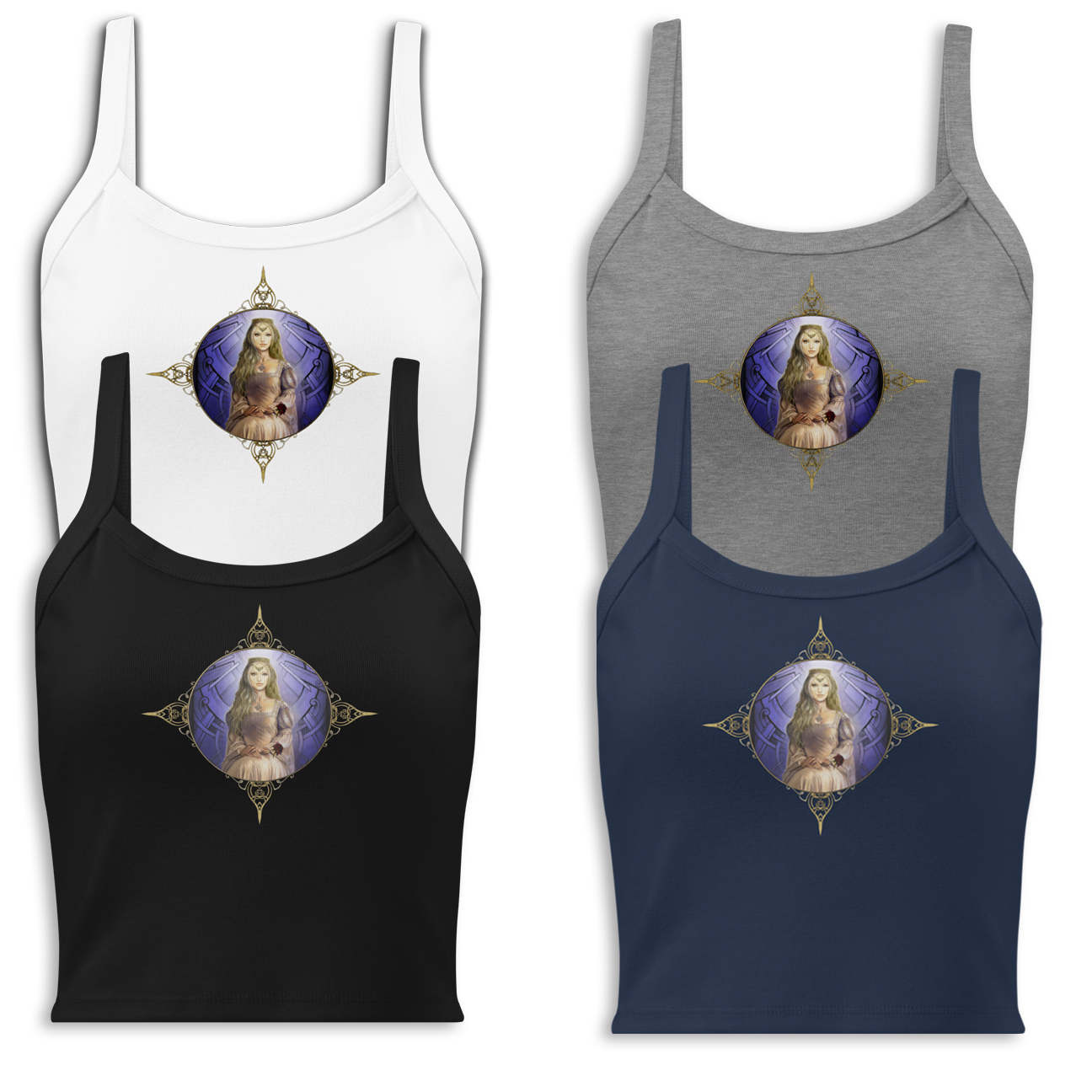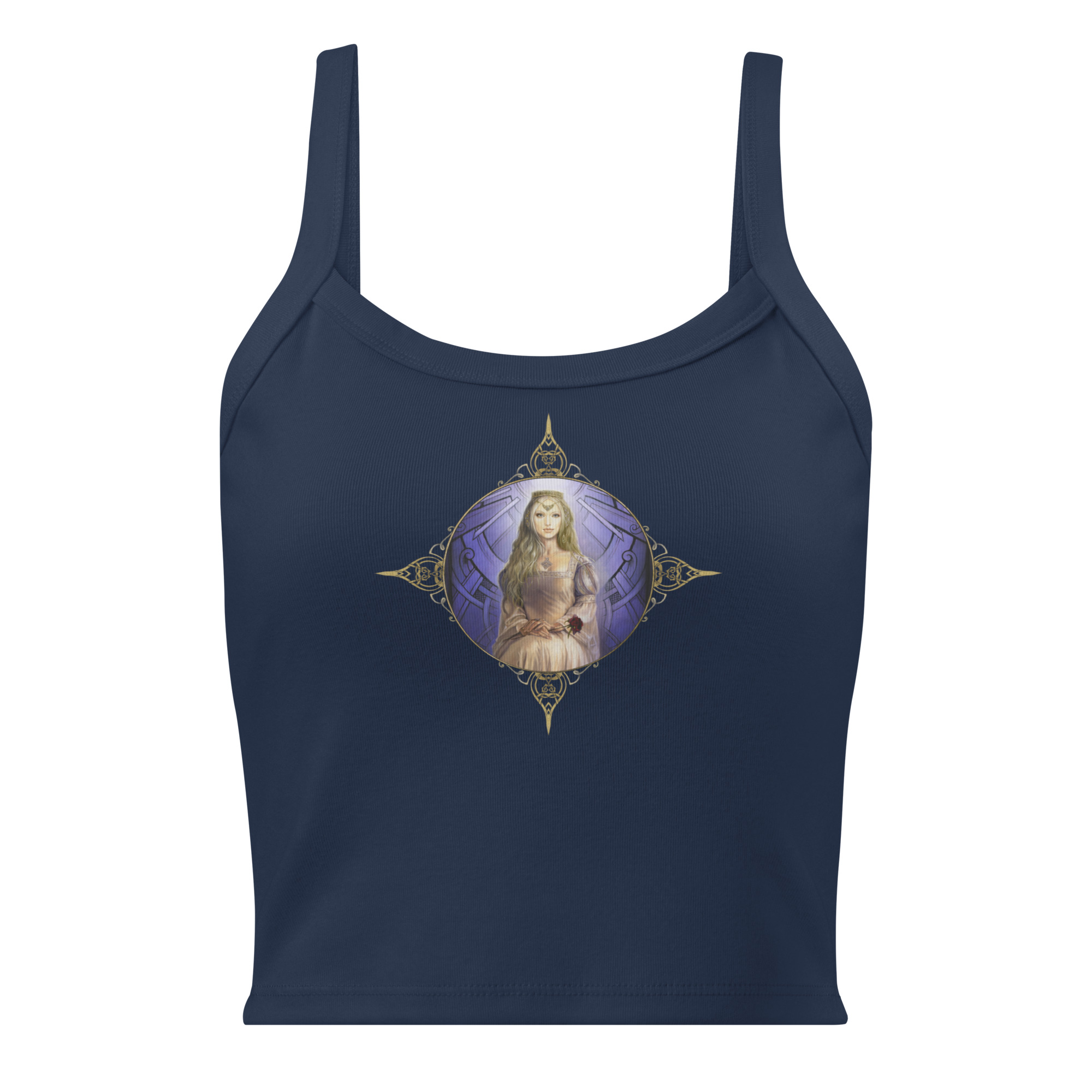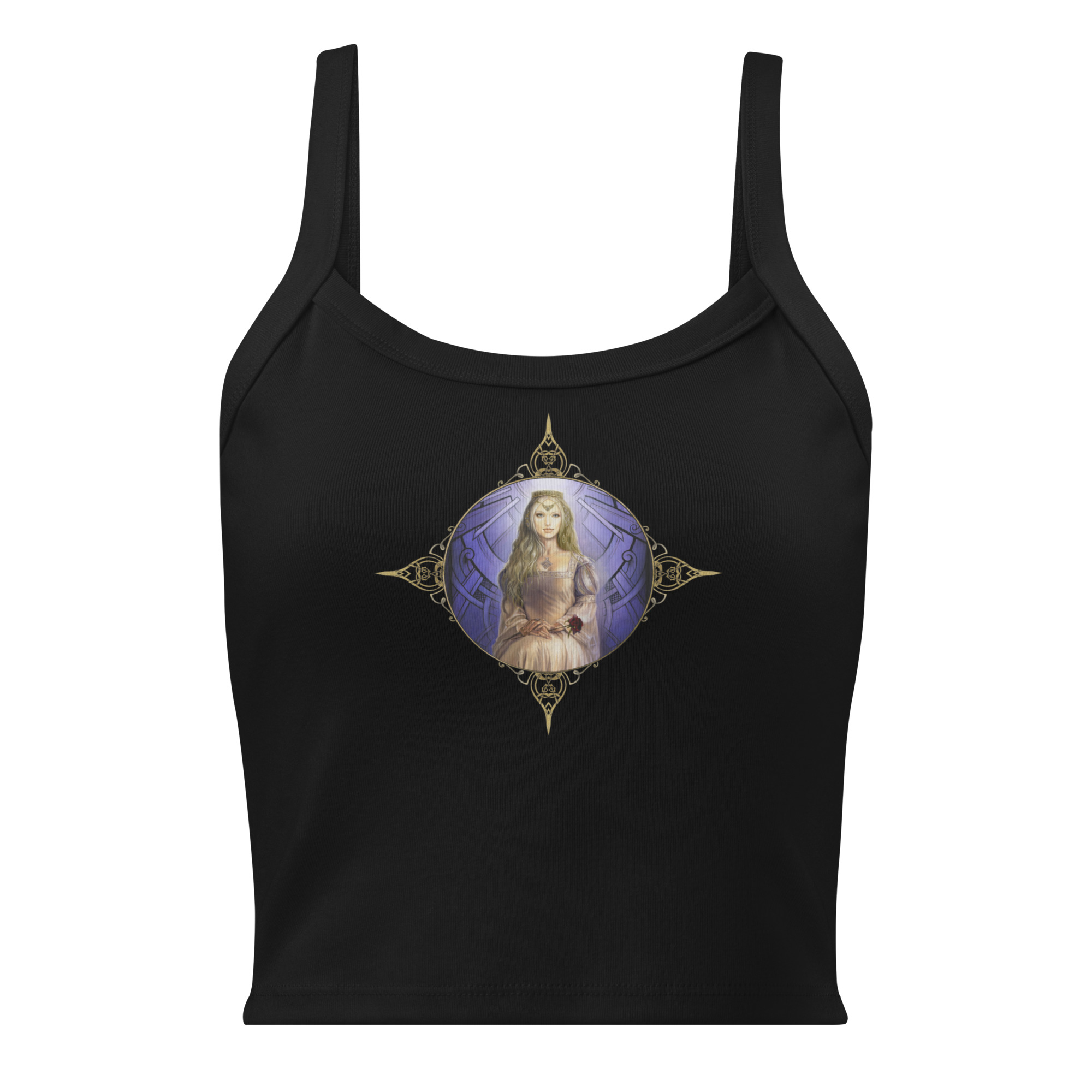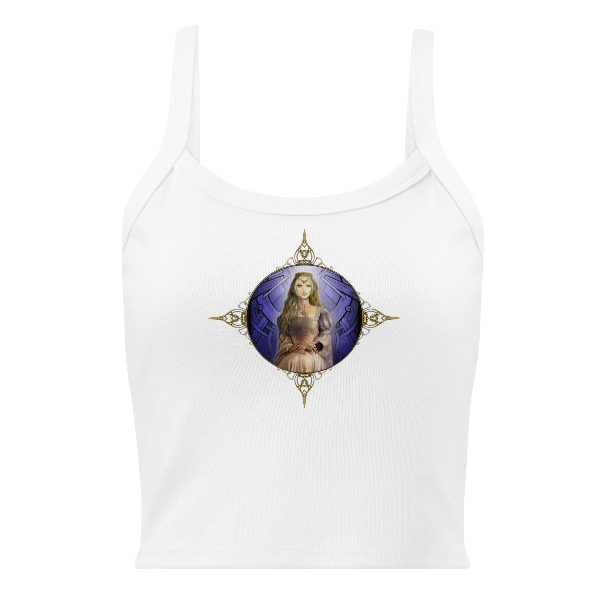 J’ai créé le visuel de ce TOP unisexe en coton biologique à partir de ma toile à l’huile « Guenièvre ». (extraite de mon livre « La légende des Dames de Brocéliande » éd. Au Bord des Continents… )