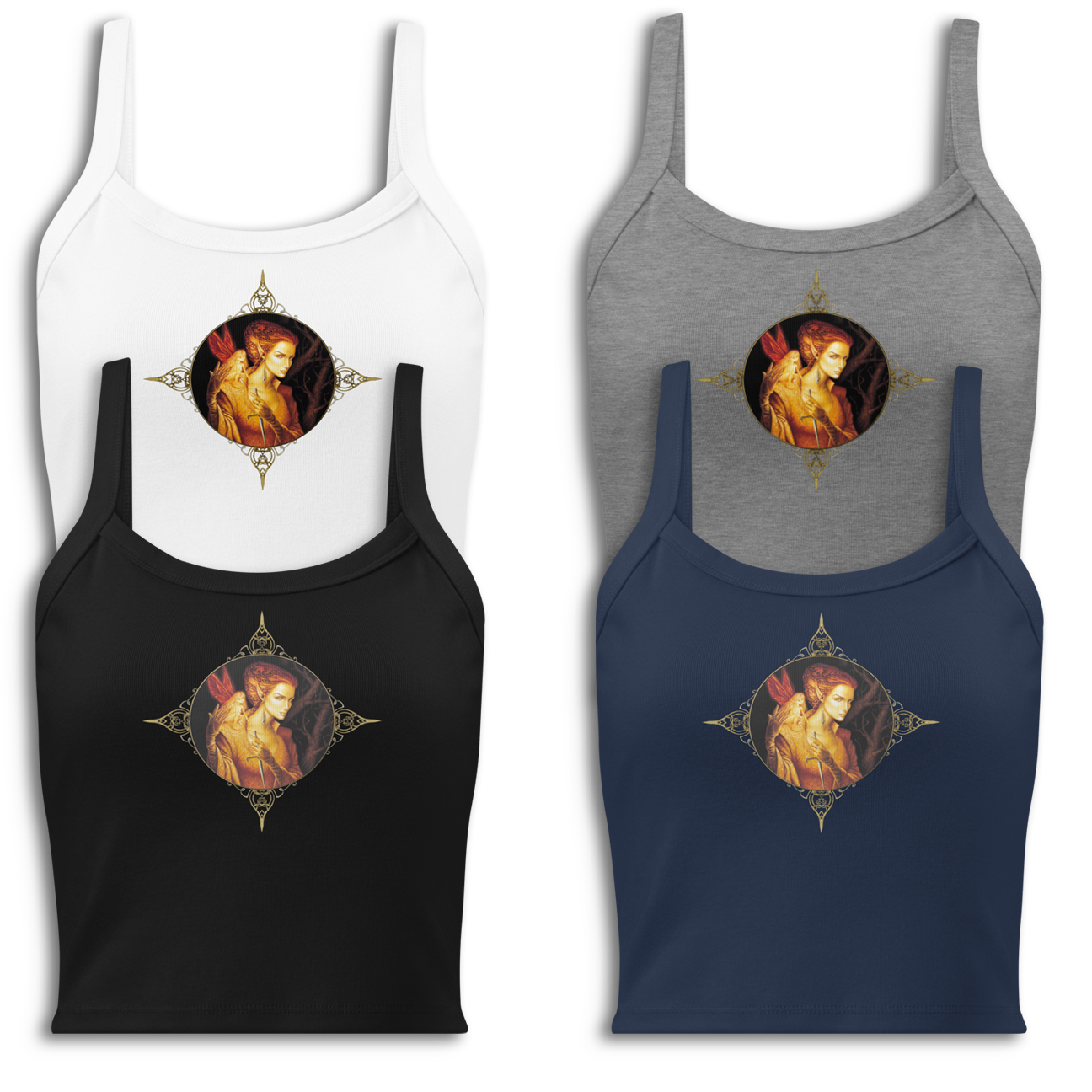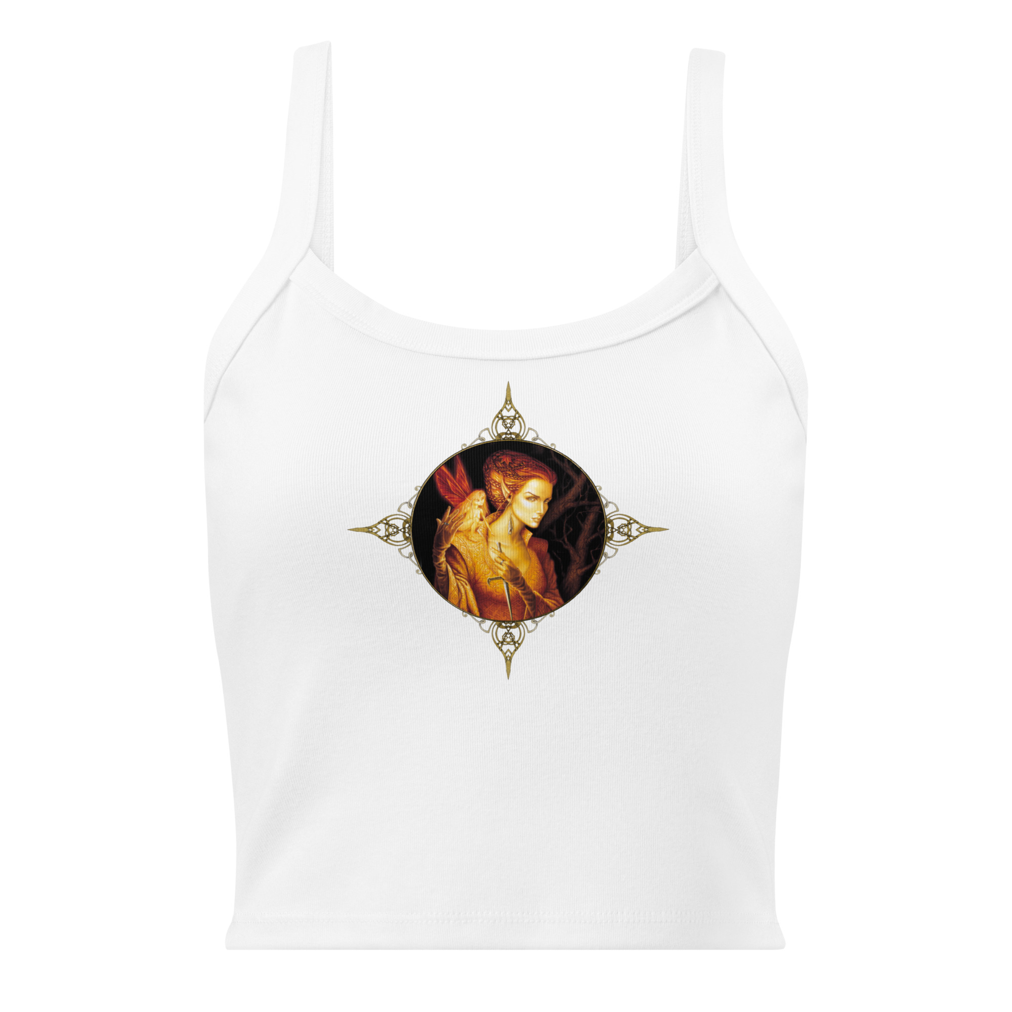 J’ai créé le visuel de ce TOP unisexe en coton biologique à partir de ma toile à l’huile « Guenièvre ». (extraite de mon livre « La légende des Dames de Brocéliande » éd. Au Bord des Continents… )